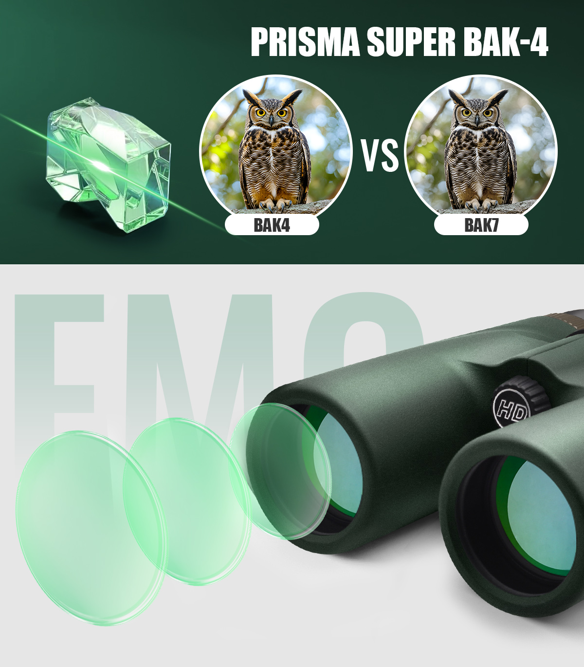 1. Prisma BAK4 ad alta trasmissione, BAK4 ha un indice di rifrazione superiore al vetro BAK7, può migliorare efficacemente la trasmittanza, immagine chiara;
